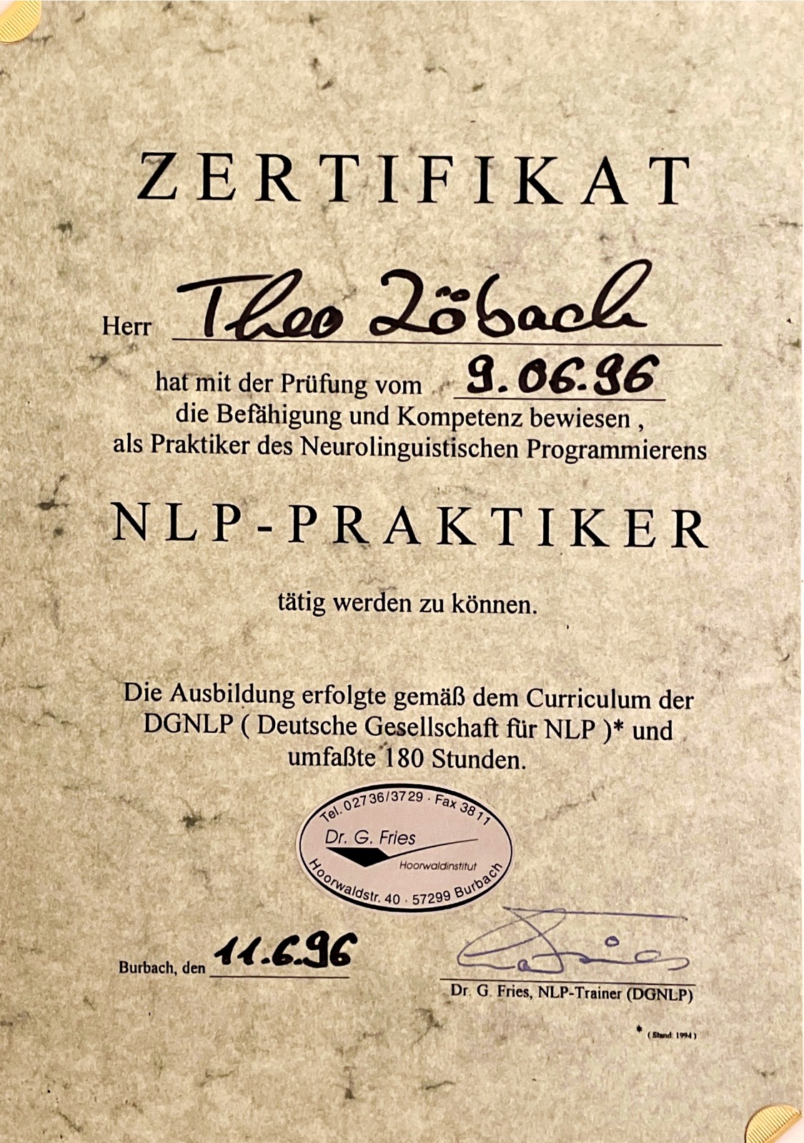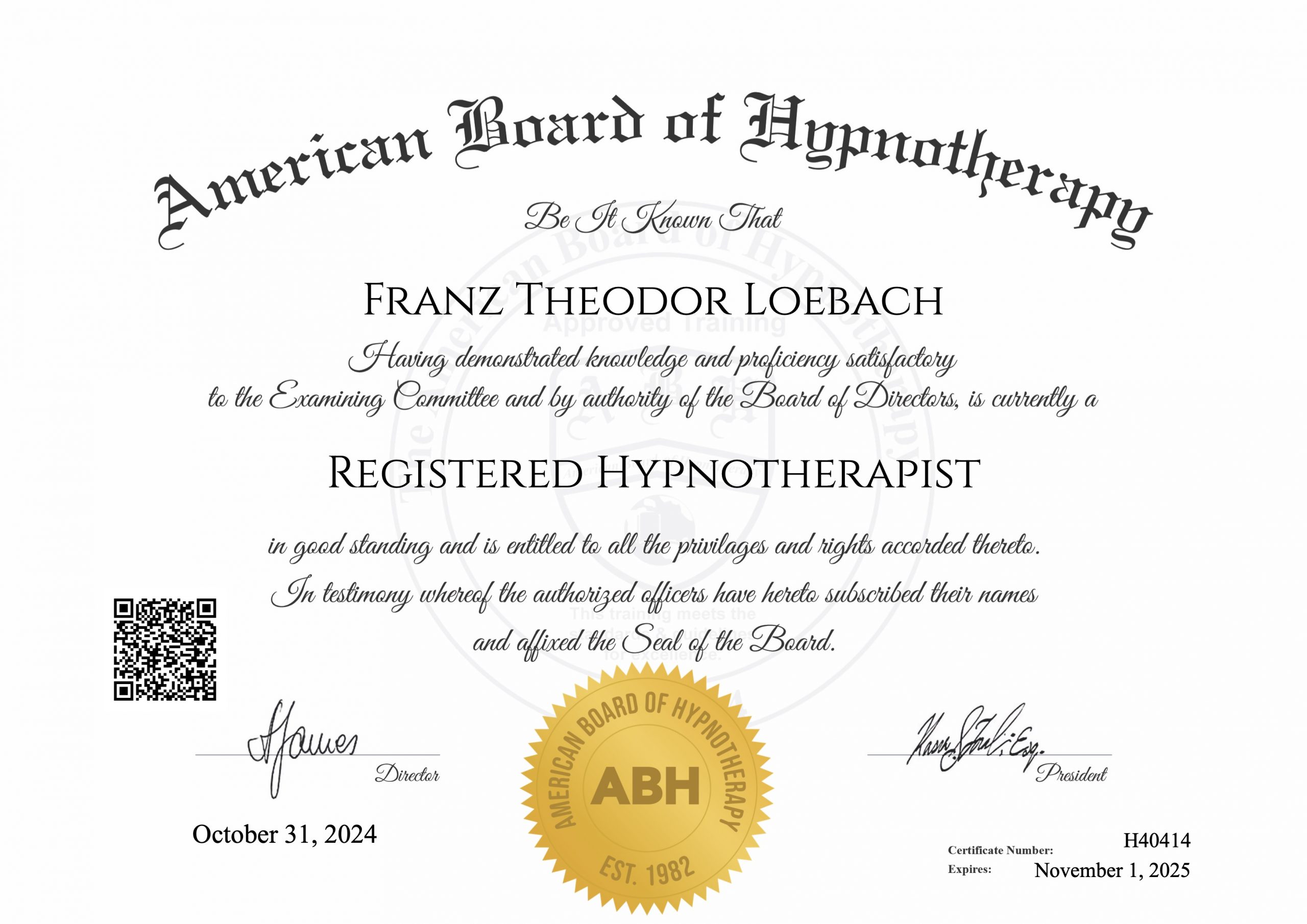 Meine umfangreichen Ausbildungen in klinischer Hypnose sowohl in Deutschland als auch in den USA verbinde ich mit modernen neurowissenschaftlichen Erkenntnissen über Lernen, Veränderung und menschliche Entwicklung.